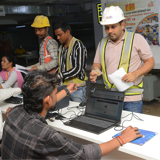 This initiative is targeted to raise awareness and provide hands-on support to ensure workers, particularly those in construction, are registered under social security programs such as the Building and Other Construction Workers (BoCW) scheme. By facilitating access to platforms like e-Shram, Ayushman Bharat, insurance cards, and ABHA cards, the project helps secure workers' rights to healthcare, insurance, and financial protection. It also focuses on strengthening capacities by training. Furthermore, awareness sessions are conducted at labour gathering points to improve outreach and help workers understand their rights and entitlements. Ultimately, the project builds a structured and replicable approach that can be expanded to other regions, making a lasting positive impact on workers' well-being.
